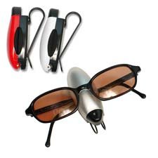 Eyeglass visor clip keeps your glasses secure and handy. Spring wire clip securely attaches to your vehicle's sun visor with the push of a button. Folded eyeglass stems (temples and earpieces) fit inside clip. Casing is made of plastic and contains foam padding to protect eyeglasses. Bottom of eyeglass visor clip is black. The top portion is available in silver, red and white.